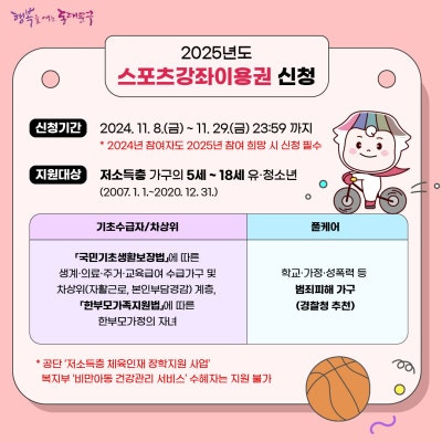 2025년부터 시행되는 저소득층 및 장애인을 위한 스포츠 강좌 이용권 지원 프로그램은