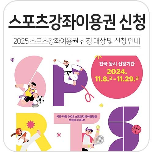 프로그램은 스포츠 강좌 수강료를 지원하여 경제적 부담을 줄이고 스포츠 활동 참여를 장려합니다.