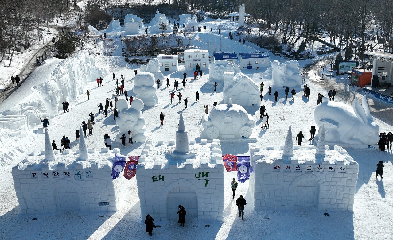 태백산 눈축제는 대한민국 대표 겨울 축제로, 눈조각 전시, 얼음미끄럼틀, 이글루카페 등 다양한 체험 프로그램을 즐길 수 있습니다. 태백산 눈축제는 눈부신 설경과 주목 군락이 웅장한 태백산을 배경으로 펼쳐지는 역사와 전통이 있는 대표 겨울축제이다.