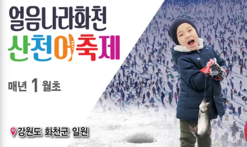 화천 산천어 축제는 매년 개최되는 축제로 강원도 특산물 중 하나인 산천어를 중심으로 한 행사로, 지역의 어촌문화와 자연환경을 체험하는 체험하고 즐기기 위한 행사 입니다.