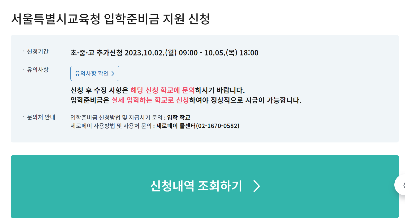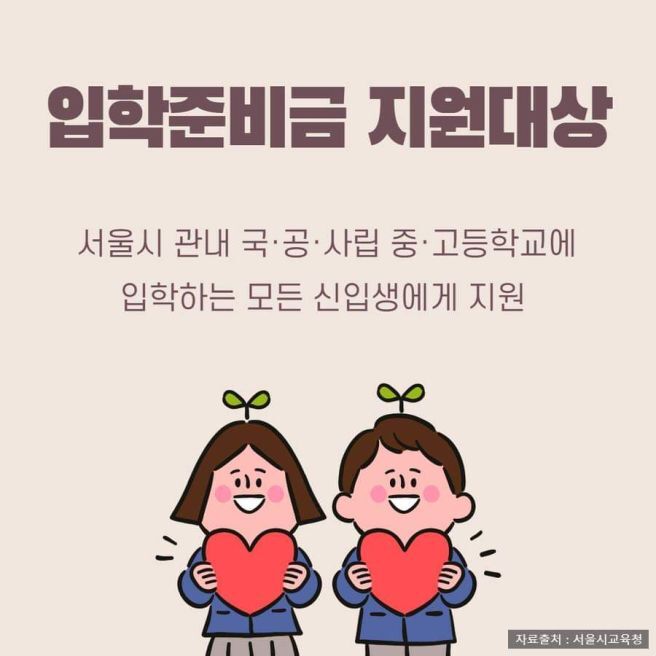 : 서울특별시교육청 입학준비금 사이트에서 신청 가능. 그 외 지역은 각 교육청 사이트에서 확인